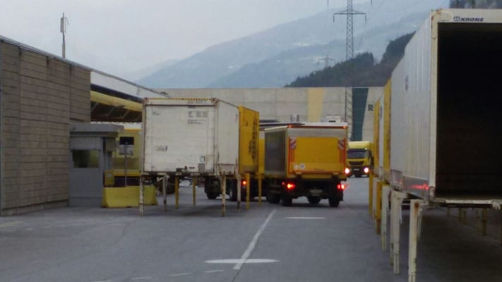 LKW wärmen sich im Winter stundenlang vor dem Aufladen, durch laufende Motore auf.