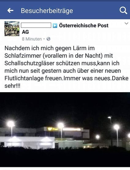 Unsere Kinder habe die Schlafzimmer in Richtung der Post – sehr helle Beleuchtung in der Nacht – Lärm ohne Ende!