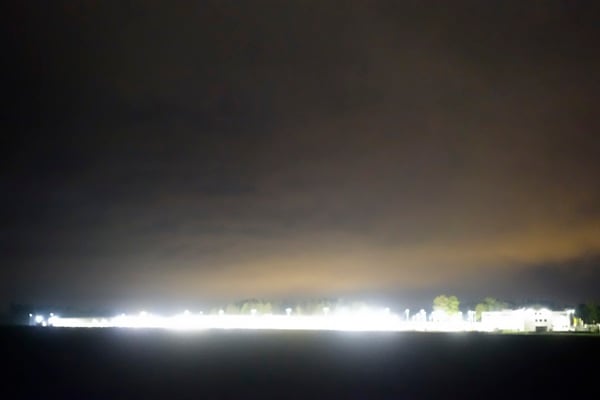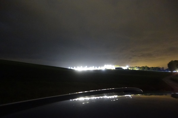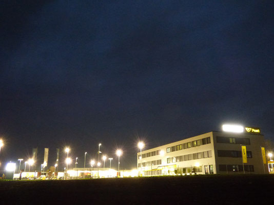 Das Logistikzentrum wird 7 Tage die Woche die ganze Nacht hell beleuchtet. Der Lichtkegel ist über viele Kilometer sichtbar.